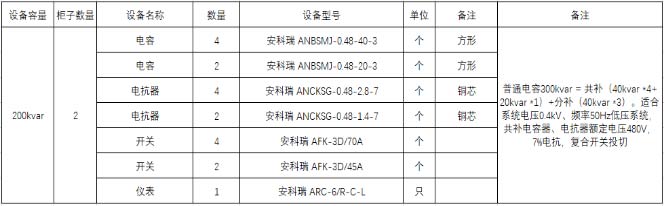 根據圖紙選擇合適的配置方案:200kvar=40kvar *4 + 20kvar *2,電抗率7%。