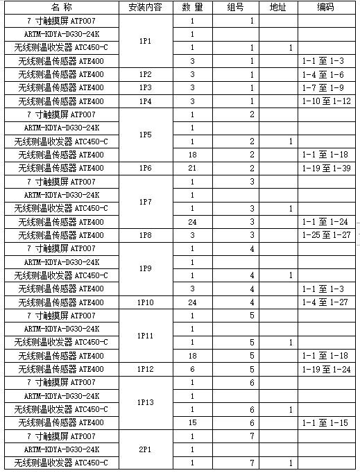 本杭州蕭山國際機場三期擴建工程項目使用無線無源測溫傳感器共計12366只,無線測溫收發器共計471只,電源模塊共計471只,觸摸屏共計471只。詳細配置方案和安裝情況如下表。