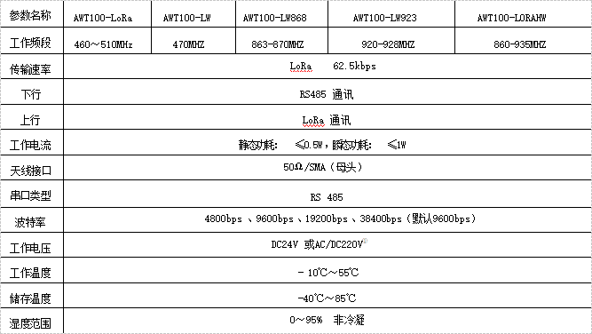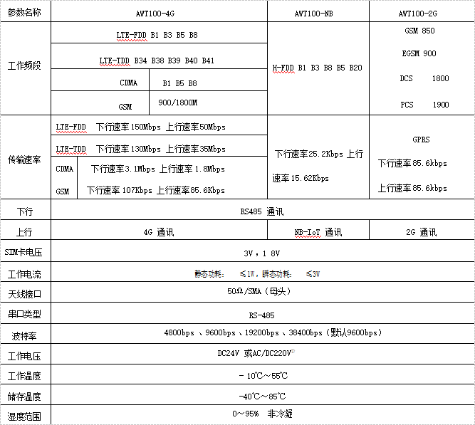 a)4G/NB/2G型號(hào)及技術(shù)參數(shù)