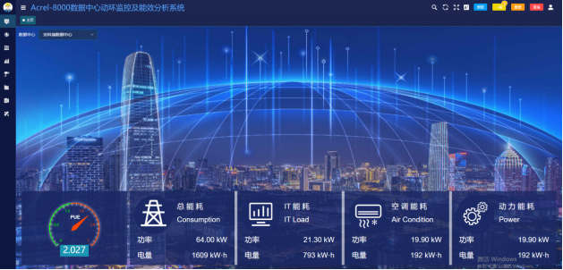 6.3.1 主頁查看:主頁展示當(dāng)前數(shù)據(jù)中心PUE值,總能耗,IT能耗,空調(diào)能耗,及其他能耗。
