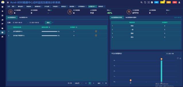 6.3.9告警分析:同時對數(shù)據(jù)中心所有報警進(jìn)行統(tǒng)計(jì),提供同環(huán)比的數(shù)據(jù)比對,幫助用戶改進(jìn)數(shù)據(jù)中心,保障其正常運(yùn)行。