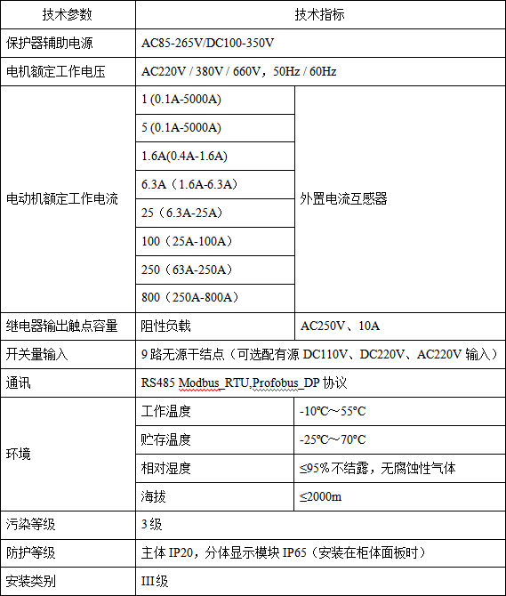 ■  保護功能包括過載反時限、過載定時限、接地、起動超時、漏電、欠載、斷相、堵轉、阻塞、短路、溢出、不平衡(電流、電壓)、過功率、欠功率、過壓、欠壓、相序、溫度、tE時間、外部故障、起動次數限制、運行時間報警、故障次數報警。