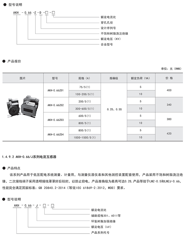 • AKH-0.66/Z型空壓機(jī)用電流互感器