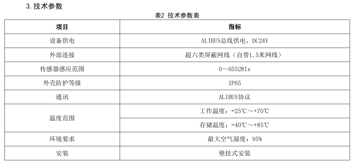 智能照明戶外照度傳感器 發布來源:http://m.tianpush.com/supply/202.html 發布時間:2022/12/30 0:00:00 1.概述 ALIBUS 智能照明戶外照度傳感器(以下簡稱傳感器),是安科瑞 ALIBUS 智能照明控制系統的輸入模塊。該模塊和其他模塊(諸如智能面板、開關驅動器等)連接到一起,組成一套完整的控制系統,實現大型公建、樓宇、道路與隧道照明系統的智能控制。 該傳感器作為輸入模塊,可以檢測日光照度,并依照預設的邏輯發送照度值至照明配電箱(柜)內的驅動器,從而實現照明的自動控制與調節。 上一篇:智能照明開關面板 下一篇:智能照明傳感器