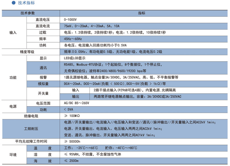 通訊協議:RS485接口 Modbus/RTU協議;DL/T645-2007 協議