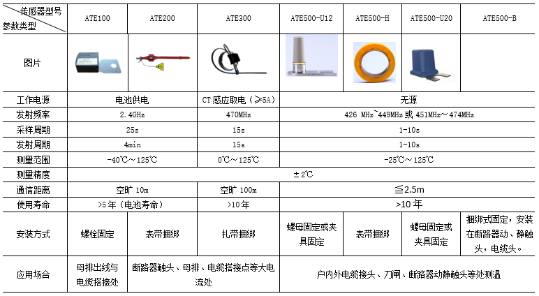 適用于高低壓開關(guān)柜內(nèi)電纜接頭、斷路器觸頭、刀閘開關(guān)、高壓電纜中間頭、干式變壓器、低壓大電流等設(shè)備的溫度監(jiān)測(cè)。
