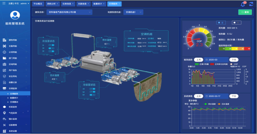 針對(duì)能源消耗量大的設(shè)備進(jìn)行單獨(dú)的監(jiān)控,例如針對(duì)中央空調(diào)設(shè)備,系統(tǒng)不僅可以監(jiān)視中央空調(diào)各部分的運(yùn)行參數(shù),還可以針對(duì)中央空調(diào)的運(yùn)行效 率進(jìn)行央空調(diào)的能效計(jì)算,并將能效值與能效標(biāo)準(zhǔn)進(jìn)行對(duì)比,從而反映出中央空調(diào)的能效真實(shí)狀態(tài)。可以提供節(jié)能改造前后中央空調(diào)能效對(duì)比,從而驗(yàn)證改造是否有效。