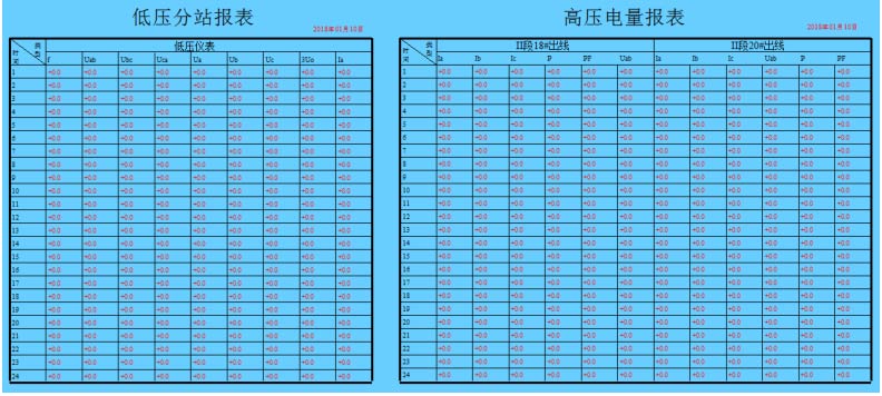 查詢各回路或設備指定時間的運行參數,報表中顯示電參量信息應包括:各相電流、三相電壓、總功率因數、總有功功率、總無功功率、正向有功電能等。